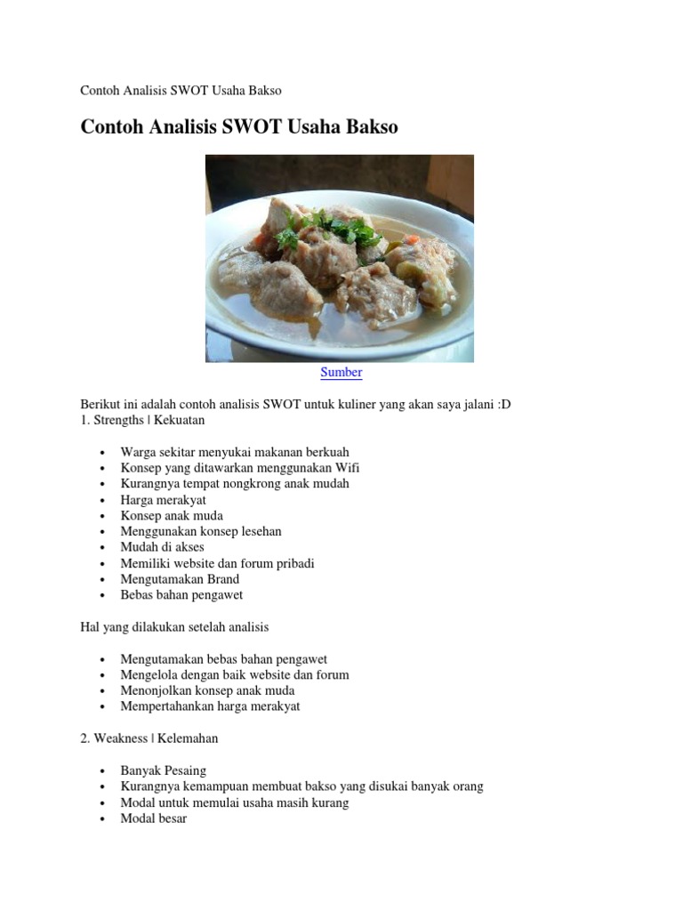 Contoh Analisis Swot Usaha Bakso Pdf